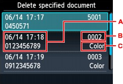 - If there are no documents stored in the machine's memory, There is no document that can be deleted. is displayed. Press the OK button to return to the previous screen.