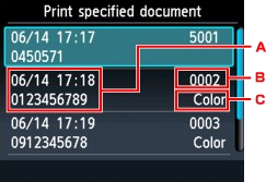 button to select Print specified document, then press the OK button.The document selection screen is displayed.