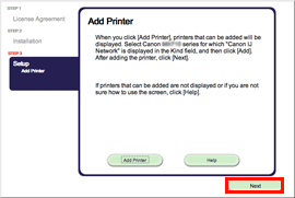 3. Select Canon xxx series Canon IJ Network and click Add.