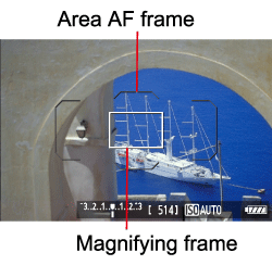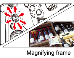 >(Multi-controller) to move the magnifying frame to the position where you want to focus.