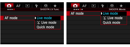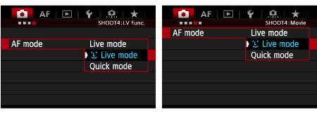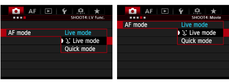 While the Live View image is displayed, you can press the < AF・DRIVE > button to select the AF mode on the setting screen displayed.
