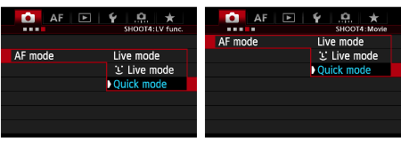 The image sensor is used to focus. Although AF is possible with the Live View image displayed, the AF operation will take longer than with Quick mode. Also, achieving focus may be more difficult than with Quick mode.