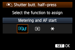 In situations like these, change the settings as shown in the diagram below to use Metering and AF start when the shutter button is pressed halfway.