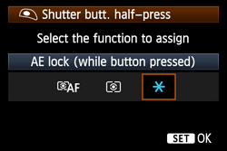 The diagram below shows the setting for using AE lock (to fix the exposure) when the shutter button is pressed halfway.