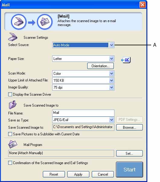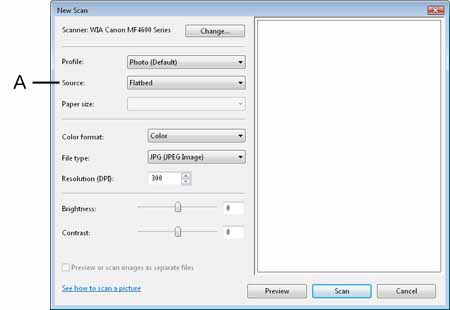1. In [Source] in the [New Scan] Dialog Box, select where the document is placed.