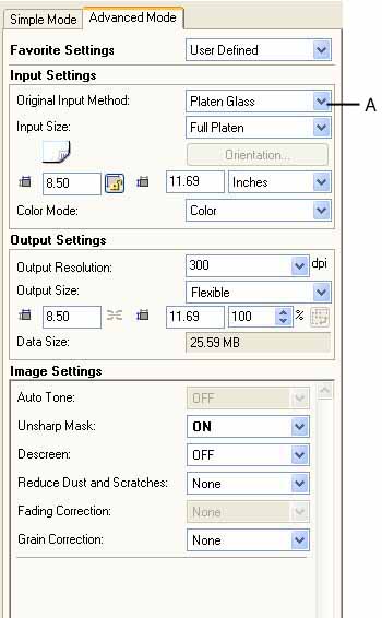 1. In [Original Input Method], select where the document is placed from [Platen Glass] or [ADF (1-sided)].