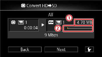 When converting, you can check the memory capacity after conversion by referring to the information that appears on the camcorder’s LCD screen.