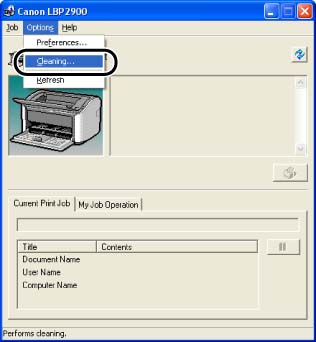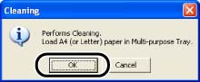 The message <Cleaning> is displayed in the Printer Status Window, and the cleaning starts. The cleaning finishes after the paper is output, and the message is cleared.