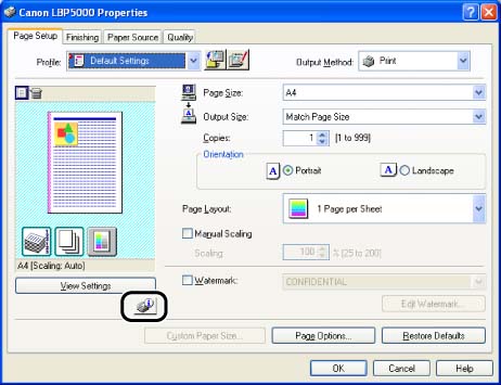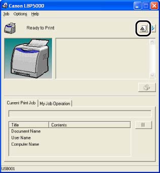 1. Display the Printer Status Window by clicking the [Display Printer Status Window] button in locations such as in the [Page Setup] sheet in the [Document Properties] dialog box.