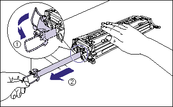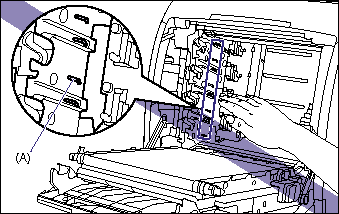 i. When pulling out the sealing tape, be careful not to hold the drum protective shutter (A) with your hands.