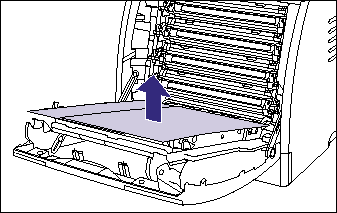 k. When removing the paper, be careful not to touch or damage the transfer belt of the ETB unit.