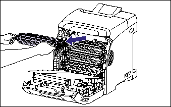 Holding the toner cartridge with your both hands firmly, pull it out so that you do not touch the transfer belt of the ETB unit.