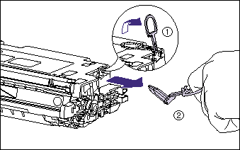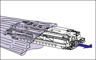 4. Holding the toner cartridge to be replaced by the blue tabs on the both sides, pull it horizontally.