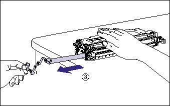 i. Pull out the sealing tape completely from the toner cartridge. If any tape remains in the toner cartridge, this may result in poor print quality.