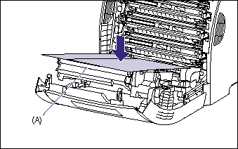 3. Place paper (A4 size paper is recommended) on the transfer belt of the ETB unit (A) as shown in the figure so that the paper is not shifted.