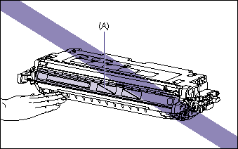 j. When pulling out the sealing tape, be careful not to hold the drum protective shutter (A) with your hands.