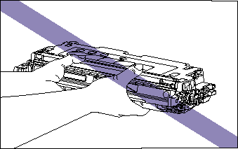 Do not hold the toner cartridge in a manner that is not directed in this procedure.