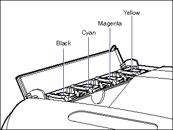 d. The toner cartridges are installed from the bottom in order of Yellow, Magenta, Cyan, and Black.