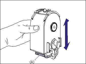 5. Hold the toner cartridge so that the tab (A) is at the bottom, and then shake it up and down 10 times each as shown in the figure to evenly distribute the toner inside the cartridge.