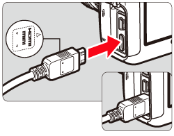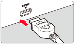 HDMI MINI> logo facing the back of the camera, insert it into the <HDMI OUT> terminal.