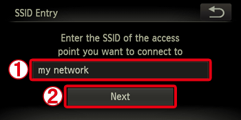 Touch inside the frame and a keyboard will be displayed. Enter the SSID key and touch