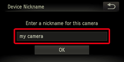 When setting up a wireless LAN for the first time, the camera nickname registration screen will be displayed.