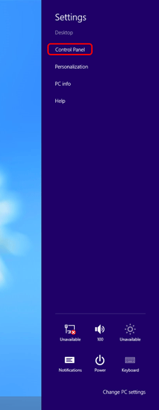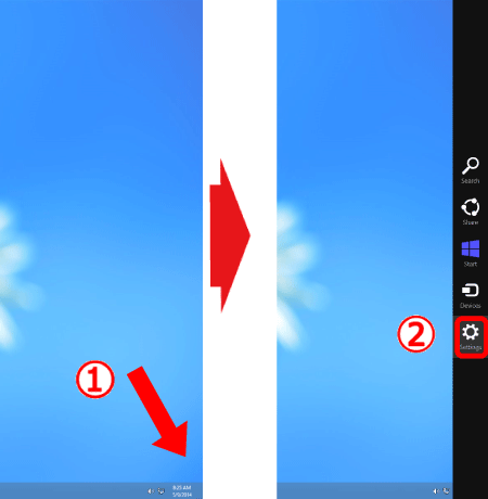 Move the pointer to the bottom right of the screen to display the Charms Bar, and then