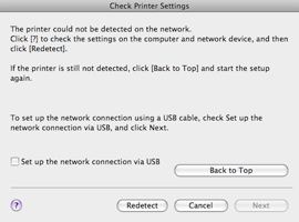 The setup instructions for printer connection will be shown. However, since you have already connected the printer in [ 1. Select the wireless setup method ], you do not need to do it again. Just select the same connection method as you have done in [ 1. Select the wireless setup method ], and skip the subsequent instructions by clicking Next until you see the screen below.