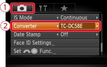 To use [IS Mode] function for shooting, after attaching the optional [TC-DC58E] tele-converter lens to the camera, change the settings of the camera accordingly.