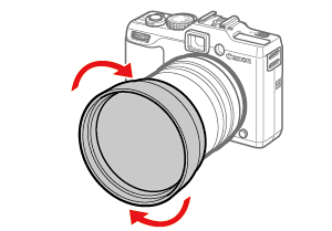 ] mark on the camera, and then turn the adapter in the direction of the arrows until it locks.To remove the adapter, hold down the ring release button and turn the adapter in the opposite direction.