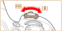 > (telephoto), and to zoom away from the subject, move it toward <