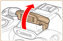 - If [Raise the flash] is displayed, lift the flash with your finger to prepare it for use. If you prefer not to use the flash, push it down with your finger, into the camera.