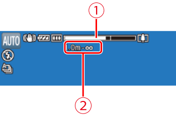 > (wide angle). (A zoom bar showing the zoom position is displayed.) - To zoom in or out quickly, move the zoom lever all the way toward <