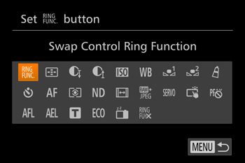 Assigning Regularly Used Functions to the [RING FUNC] and [Movie] Buttons (PowerShot G7 X)