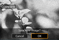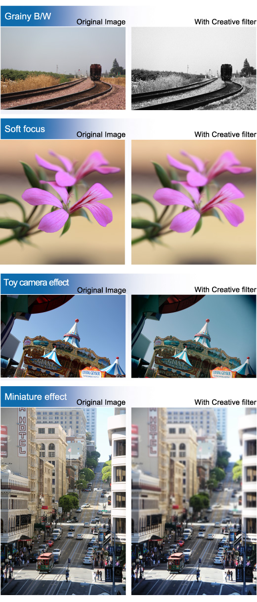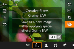 You can apply Creative filters even during image playback. An image applied with a Creative filter during playback can be saved as a new image, leaving the original image intact.