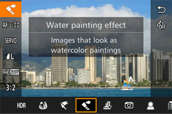 Water painting effect [ ] | Makes the photo look like a watercolor painting with soft colors. |