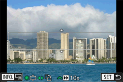 In miniature mode, a white frame is displayed, indicating the image area that will not be blurred. Press the [
