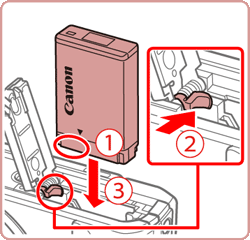 - If you insert the battery pack facing the wrong way, it cannot be locked into the correct position. Always confirm that the battery pack is facing the right way and locks when inserted.