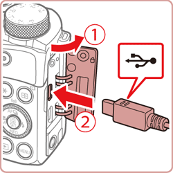 You can also charge the battery pack by inserting the larger plug of the interface cable into a computer’s USB terminal in