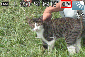 - Icons representing the scene and image stabilization mode are displayed in the upper right of the screen