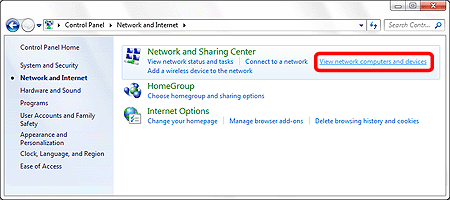 - Click the Start menu on the computer, click [Control Panel] -> [Network and Internet] -> and then click [View network computers and devices].