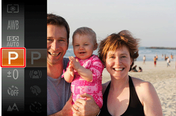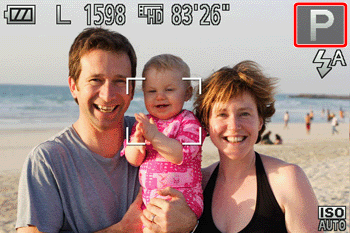 2. If the shooting mode is set to [AUTO], press the [ ] button several times until [P] is displayed.