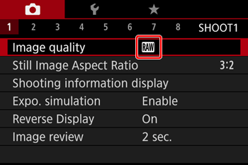 ] mark is displayed next to [RAW]. To undo this setting, follow the same steps and remove the [