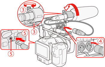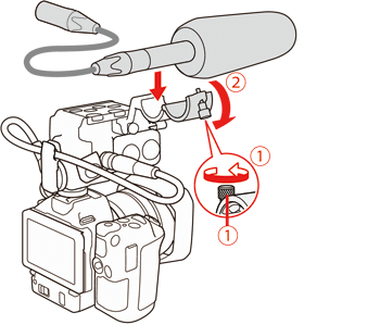 - Follow the procedure below to attach a microphone (refer also to the following illustration). To connect an external device to the camcorder, plug the device’s cable into the desired INPUT terminal (