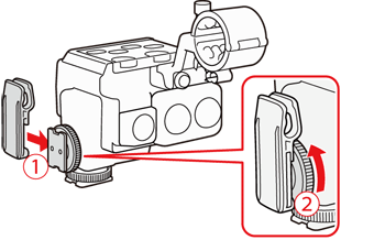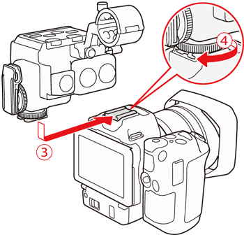) to the camcorder's accessory shoe and tighten the lock screw (
