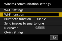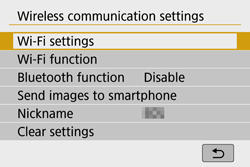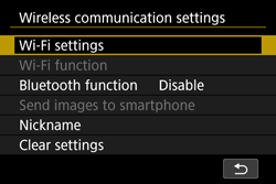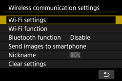 This nickname will be displayed on the screen of target devices when connecting to other devices via Wi-Fi. Be sure to set a nickname as otherwise you cannot go to the wireless LAN settings screen.