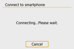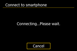 When a message indicating the connection is being established is displayed on the camera’s LCD monitor, move the smartphone away from the camera.