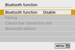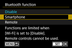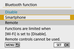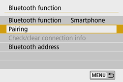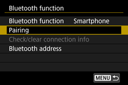 Note that pairing between the camera and smartphone is required to connect the camera to a smartphone via Bluetooth. Pairing will be done as part of the Bluetooth connection procedure.