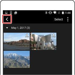 When a list of images in the camera appears on the smartphone, tap [Select] on the upper right of screen.