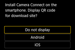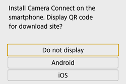 - When an NFC-enabled smartphone on which Camera Connect is not installed is touched to the camera, the download screen of Camera Connect will be displayed on the smartphone.